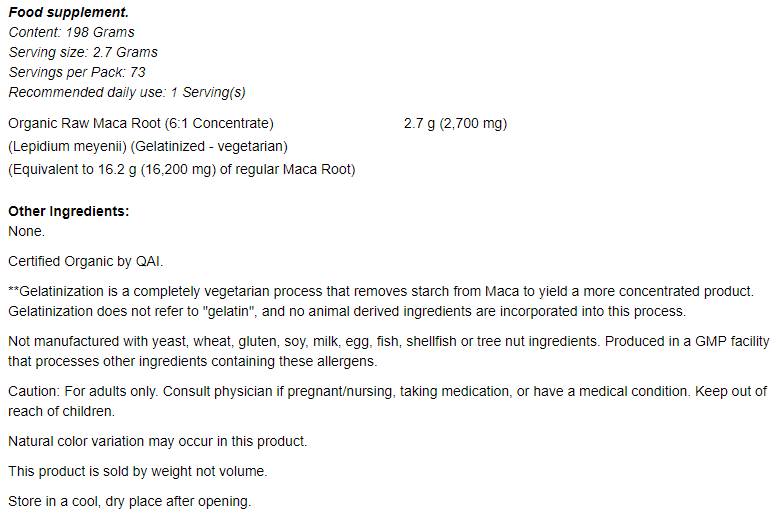 MACA 6:1 Concentrate Pure Powder - 198 grams