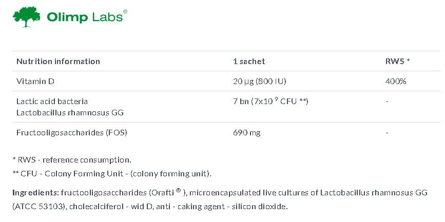 Intended use: for children over 3 years of age as a supplement to the intestinal microflora during and after antibiotic therapy, after infection, diarrhea and as a supplement to a diet with Vitamin D.