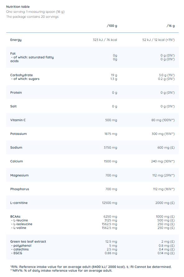 Electrolyte Powder | with BCAA, L-Carnitine & Green Tea - 320 grams