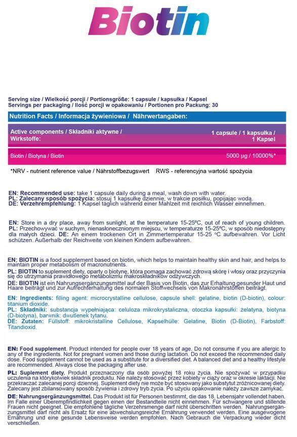 It is important to note that biotin supplements are safe, but in rare cases they may cause allergic reactions. It is recommended to consult a doctor, especially if you are pregnant or breastfeeding. Do not exceed the recommended dose.