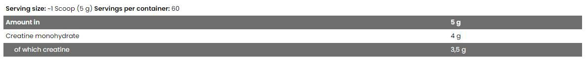 A full 4 g of creatine monohydrate from high-quality raw materials.