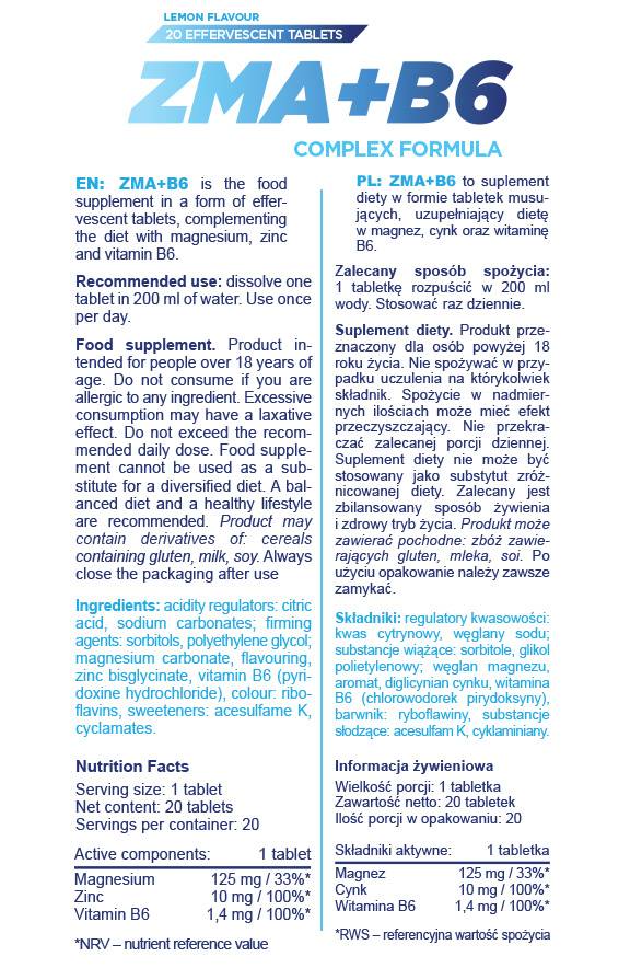 ZMA + B6 | Effervescent Complex Formula - 20 soluble tablets
