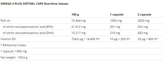 Omega-3 essential fatty acids improve brain activity, support heart function and improve vision. This product is also enhanced with vitamin D, which contributes to the normal function of the immune system.