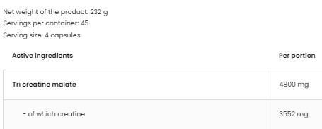 Návod k použití: vzít ( 1 dávka = 4 kapsle ) z OstroVit Tri kreatin malát / TCM 1250 mg v tréninkové dny před tréninkem a ve dnech odpočinku užívejte 1 dávku ráno nalačno.