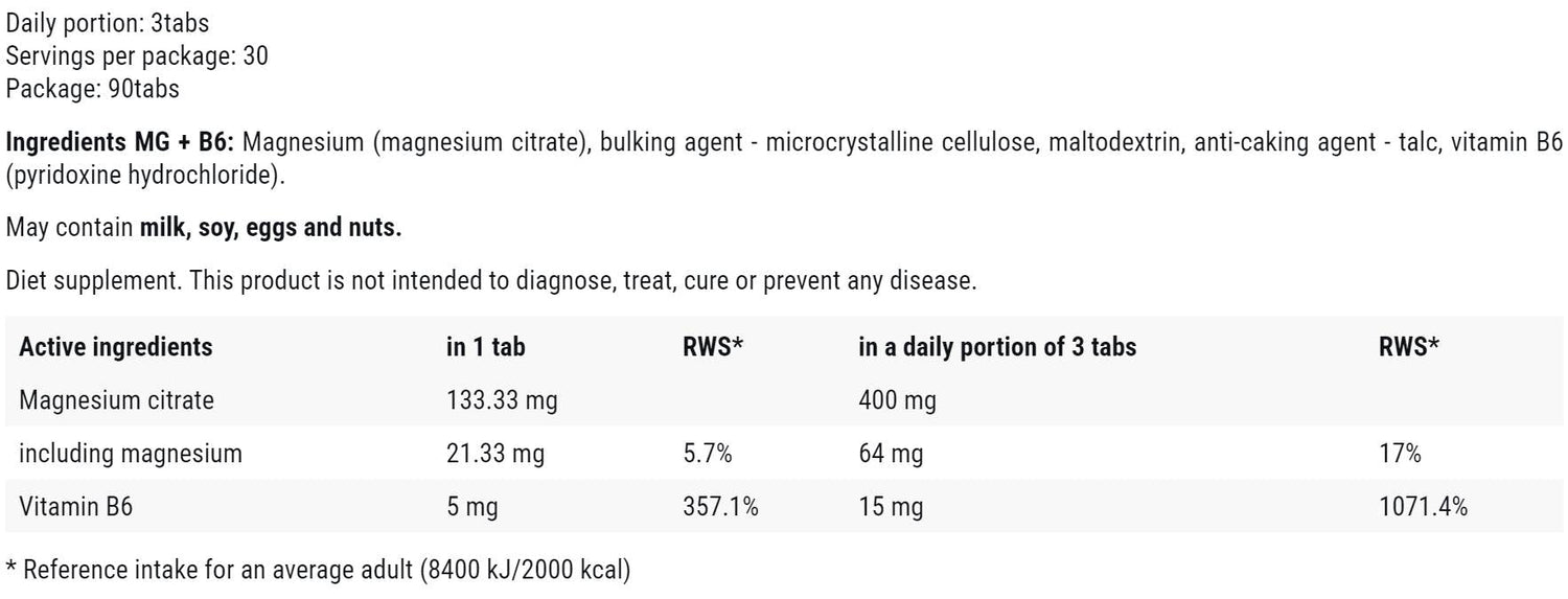 MG + B6 400 mg | Citrát hořčíku + B6 - 90 tablet