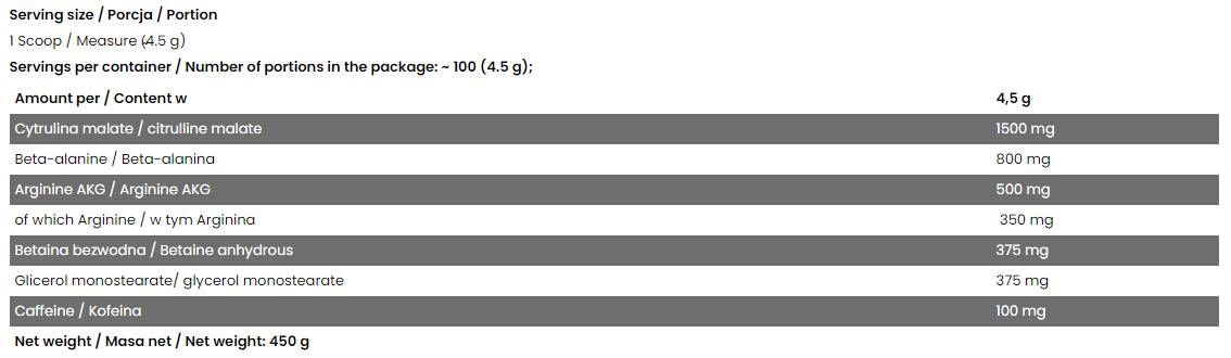 Produkt poskytuje brutální pumpu a pocit bezmezné síly . Vzorec obsahuje látky jako: