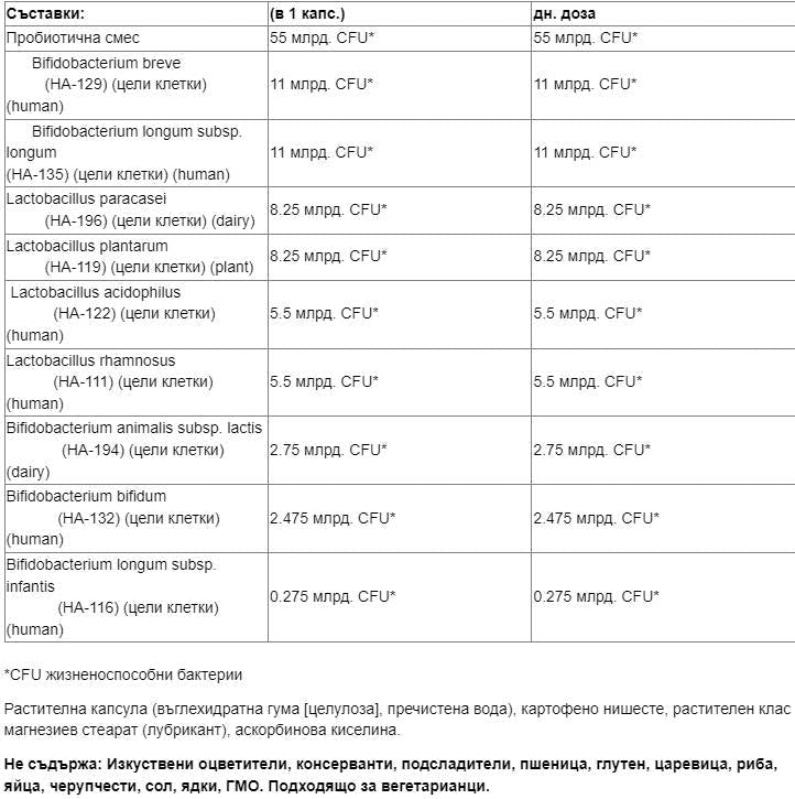 Critical Care Probiotic je patentovaná směs 9 kmenů stabilních v žaludku se silnou koncentrací 55 miliard aktivních buněk, které pracují v synergii pro maximální aktivitu a účinnost. Kmeny jsou bifidobakterie a laktobacily pro cílenou podporu tenkého i tlustého střeva. Komplex obnovuje prospěšné bakterie ztracené užíváním antibiotik, stresem, dietou, cestováním a gastrointestinálními poruchami. Toto složení nabízí významnou ochranu před bakteriální infekcí, přemnožením kvasinek a zažívacími potížemi. Patentovaná synergická směs obsahuje: Bifidobacterium breve, Bifidobacterium longum, Lactobacillus paracasei, Lactobacillus plantarum, Lactobacillus acidophilus, Lactobacillus rhamnosus, Bifidobacterium lactis, Bifidobacterium bifidum, Bifidobacterium infantis.