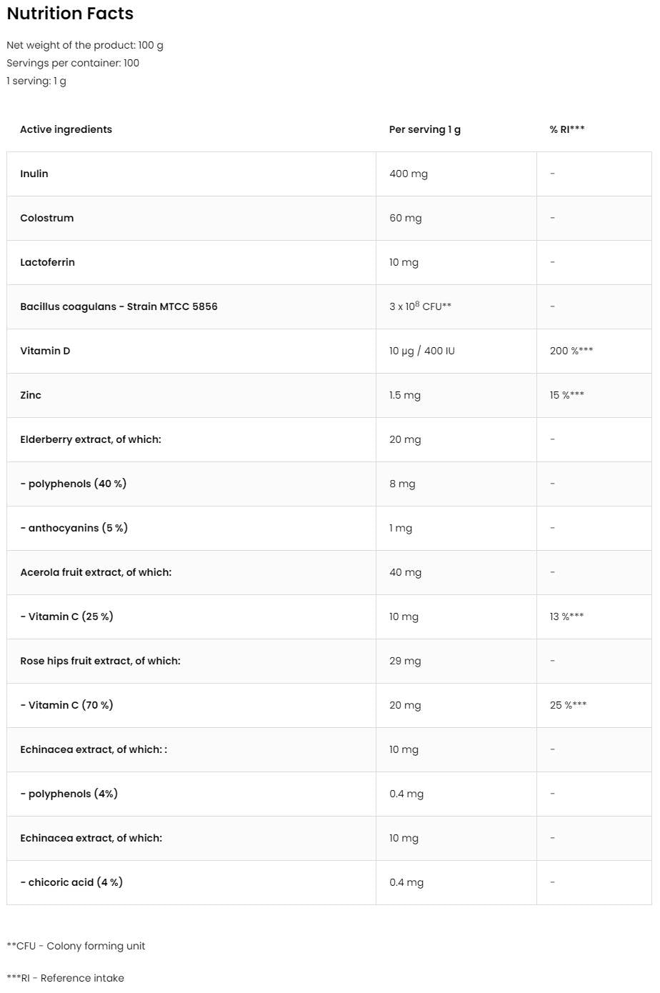 Immune Aid Powder Kids je speciálně vytvořen tak, aby poskytoval nezbytnou podporu imunitnímu systému vašeho dítěte. Svým bohatým složením vitamínů a minerálů napomáhá tento produkt ke zvýšení energie a celkové pohody. Studie ukazují, že pravidelný příjem složek, které posilují imunitní systém, může snížit frekvenci nachlazení a jiných virových onemocnění u dětí.