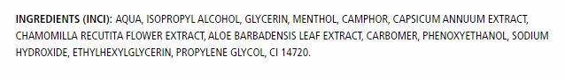 • S mentolem, kafrem a přírodními extrakty (chili, heřmánek, aloe vera)