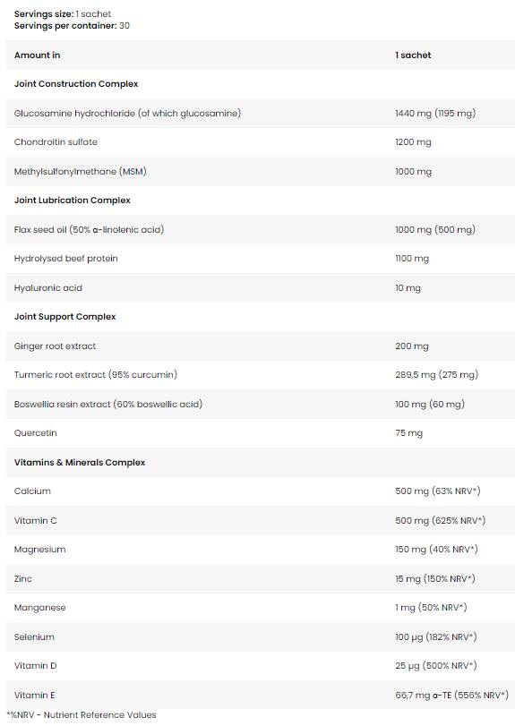 Vzorec obsahuje tři hlavní komplexy, které posilují klouby: