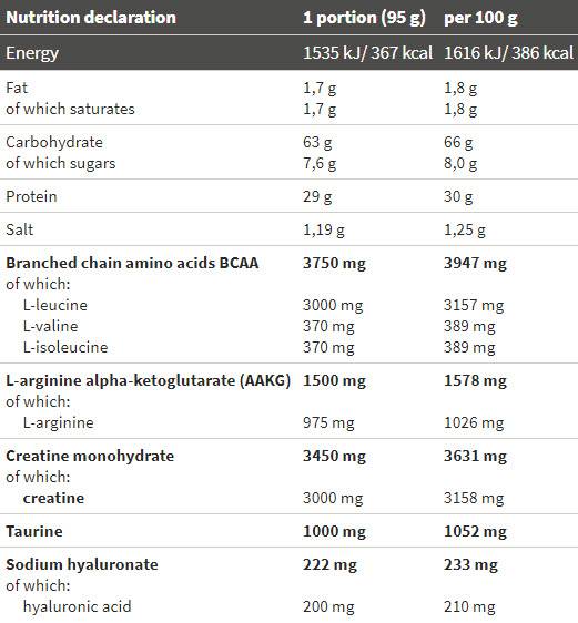 Pokyny: Užívejte jednu dávku denně ihned po tréninku. Rozmíchejte 95 gramů prášku (5 odměrek) ve 350 ml vody. Konzumujte ihned po přípravě. Před použitím tohoto produktu se poraďte se svým dietologem nebo trenérem. Uchovávejte mimo dosah dětí. Není vhodné pro diabetiky, děti a mládež. Nejlépe konzumovat studené!