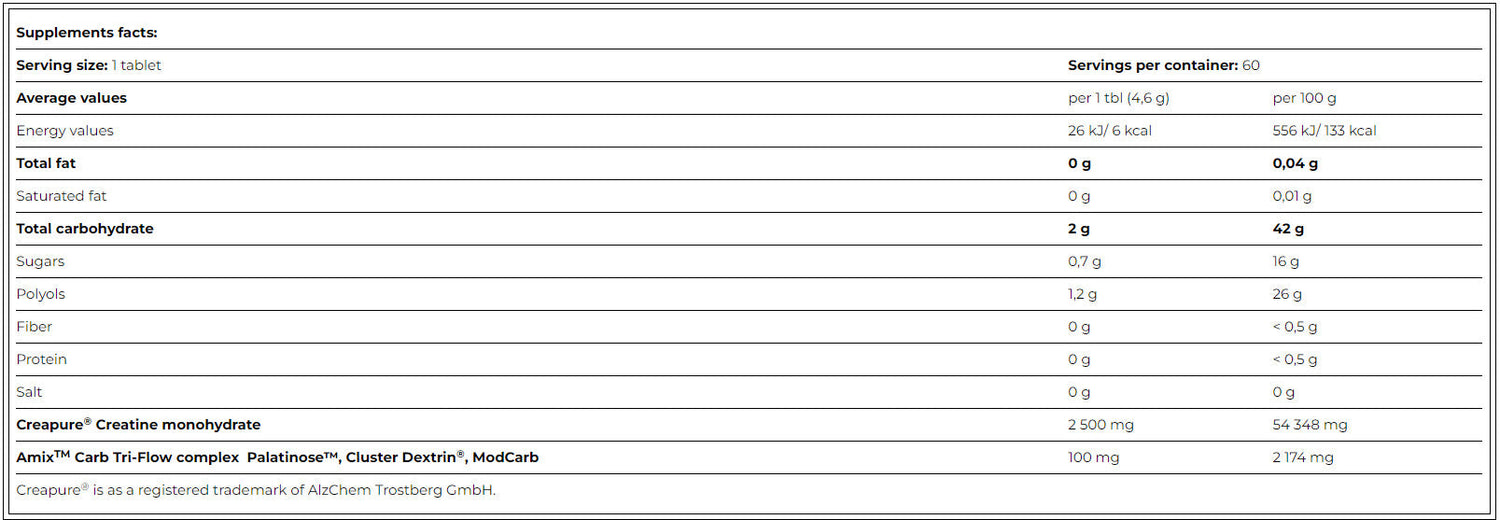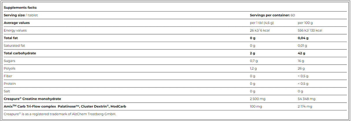 Rendimiento creatina creapure 2500 mg/60 masticaciones - 0.000