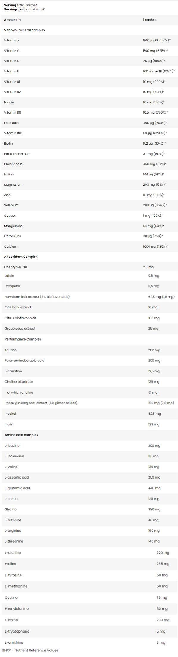 • Contribuye a la restauración de vitaminas y minerales después del ejercicio.