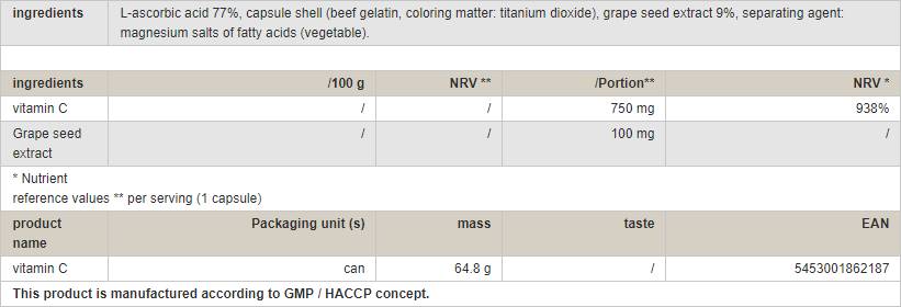 Vitamina C 750 mg/con uva - 60 cápsulas