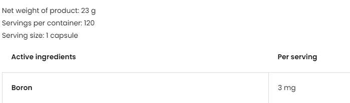 Importante: Antes de comenzar a tomar boro, consulte con un profesional médico, especialmente si tiene problemas de salud preexistentes o está tomando medicamentos.