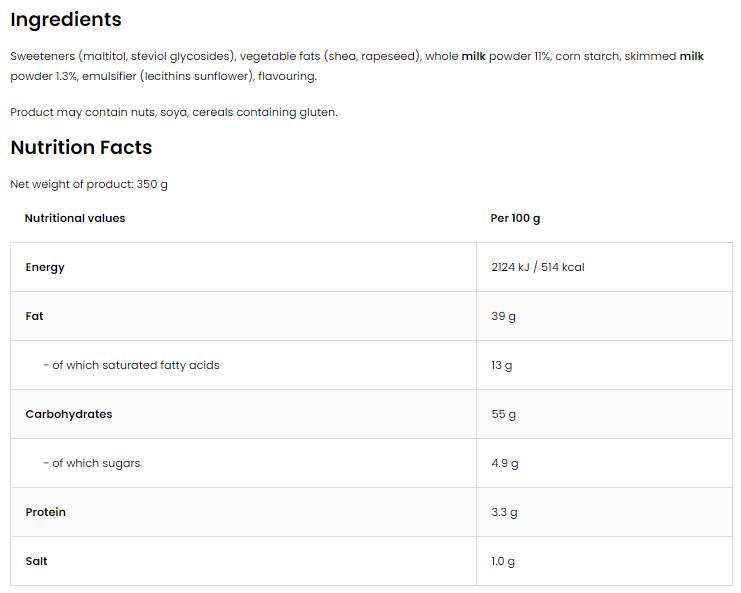 Crema/proteína propagación/chocolate blanco 350 gramos