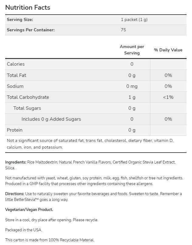 Better Stevia® Packets | French Vanilla - 75 Packets