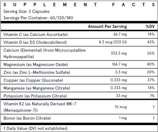 StimuCal™ is combined with vitamin D3 and vitamin K2 (as MK-7 obtained through a natural fermentation process [a more bioavailable form of vitamin K]) to promote calcium deposition in the bone matrix, thereby maintaining skeletal integrity while simultaneously supporting cardiovascular and arterial health.