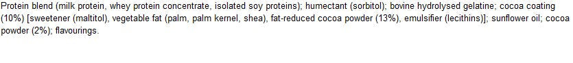Miks seda toodet osta? Selle kõrge valgusisaldus ning madal rasva- ja süsivesikute sisaldus muudavad selle ideaalseks pärast treeningut või näksimiseks. Magus maitse, ilma dieedi osas järeleandmisi tegemata, paneb sind tahtma rohkem!