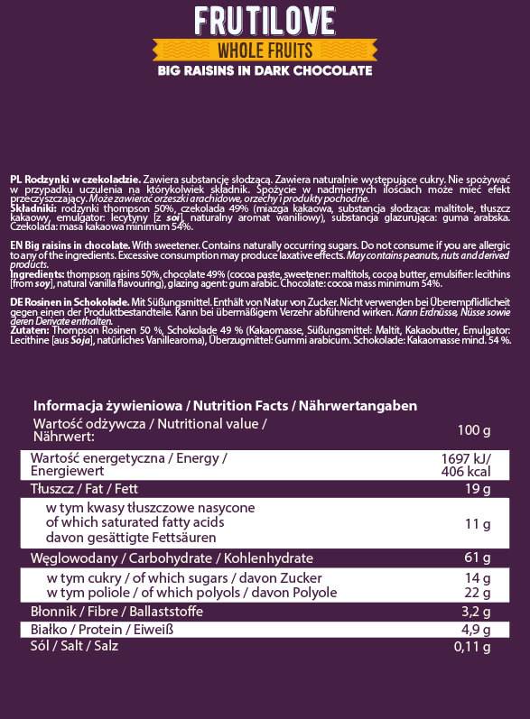 FrutiLove | Large raisins in dark chocolate 30 grams