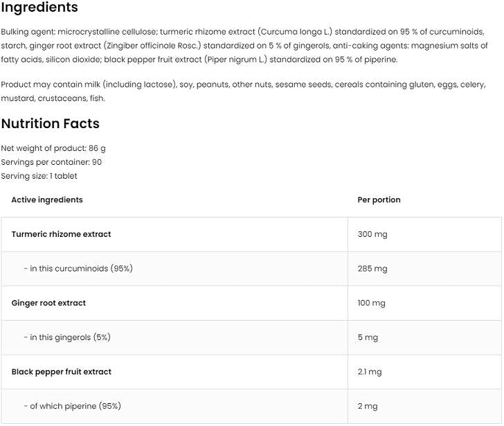 Turmeric + Black Pepper + Ginger 90 Tablets