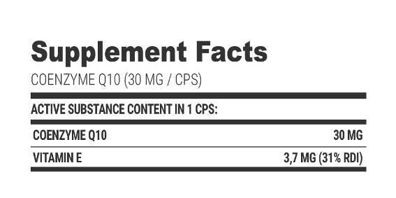 A termék KOENZIM Q 10-30 MG A CAPS Q10 koenzimet tartalmaz (30 mg/kapszula). A vitaminokhoz hasonlóan az állati sejtekben található egyik legfontosabb anyag. A Q10 koenzimet részben az emberi szervezet állítja elő, és bevitelét részben az általunk fogyasztott élelmiszerek is biztosítják. A koenzim Q10 termelése az életkor előrehaladtával csökken, így a hiány kockázata nő. A Q10 koenzim bevitele fontos a fizikai megterhelést, például állóképességi edzést végzők számára is, vagy ha az étrendhez kapcsolódik.