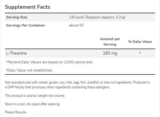 Figyelmeztetések: Ne szedje az L-Theanine-t, ha Ön terhes, szoptat, vagy ha súlyos egészségügyi problémái vannak, anélkül, hogy először konzultálna orvosával.