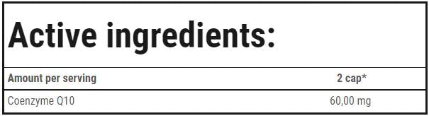ÖSSZETÉTEL: maltodextrin; kapszulahéj (zselatin; szín – titán-dioxid); koenzim Q10 (6,0%); csomósodást gátló anyag – zsírsavak magnéziumsói.