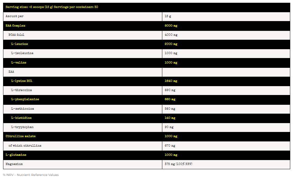 Nuklear Impakt | Komplett Aminino Shoids Formel - BCAA, Eaa, Glutamine, Citruline - 450 Gramm