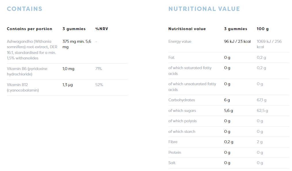 Virdeeler vun huelen Ashwagandha 375 mg Gummies sinn: