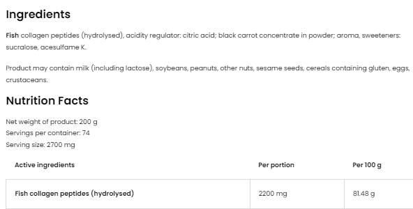 Warnungen: D'Produkt ass kontraindizéiert fir Leit mat Seafood Allergien. Consultéiert en Dokter virum Gebrauch wann Dir Gesondheetsproblemer hutt oder Medikamenter hëlt.