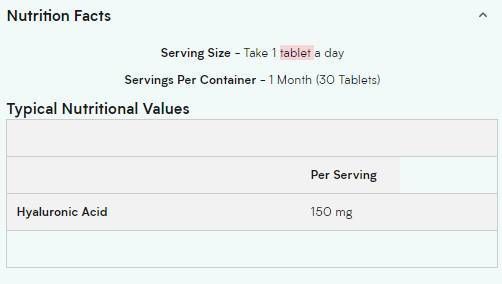 Hyaluronsäure ass a klineschen Studien iwwer Hautalterung involvéiert, wou Ergänzung fir aacht Wochen d'Erscheinung vu Falten reduzéiert huet. Mat enger héich konzentréierter Formel sinn eis Hyaluronsäure Pëllen Expert formuléiert fir eis natierlech Niveauen z'erhalen wéi mir Alter sinn.