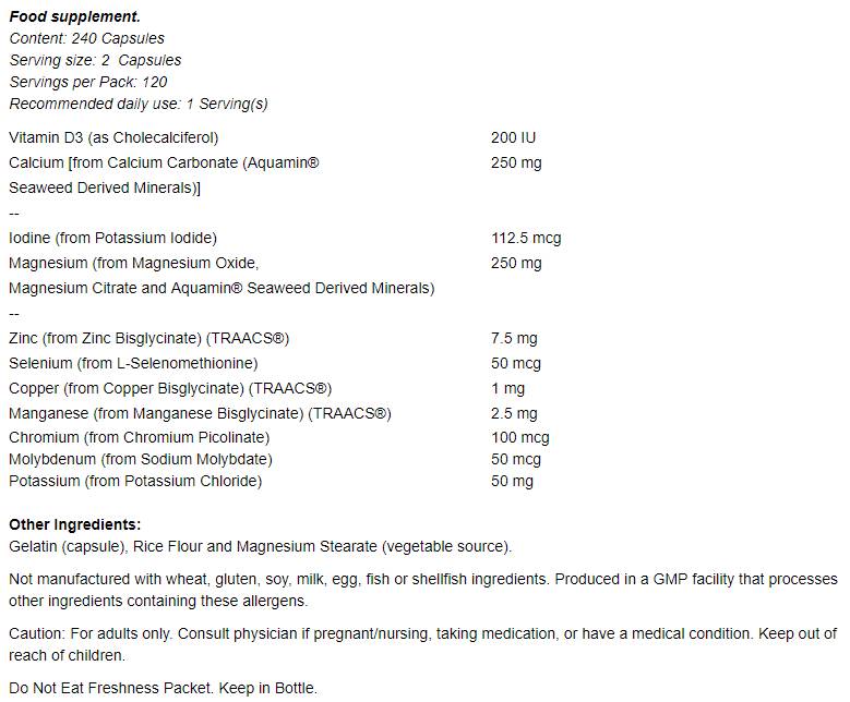 Voll Spektrum Mineralstoffer ass extrem gëeegent fir Leit vun all Alter, well d'Ingredienten an dësem Produkt essentiell sinn fir de Qualitéitswachstum an d'Entwécklung vu Stoffer, normalen Metabolismus, Enzym- a Coenzymaktivitéit, an all biochemesch Reaktiounen déi am Kierper optrieden.