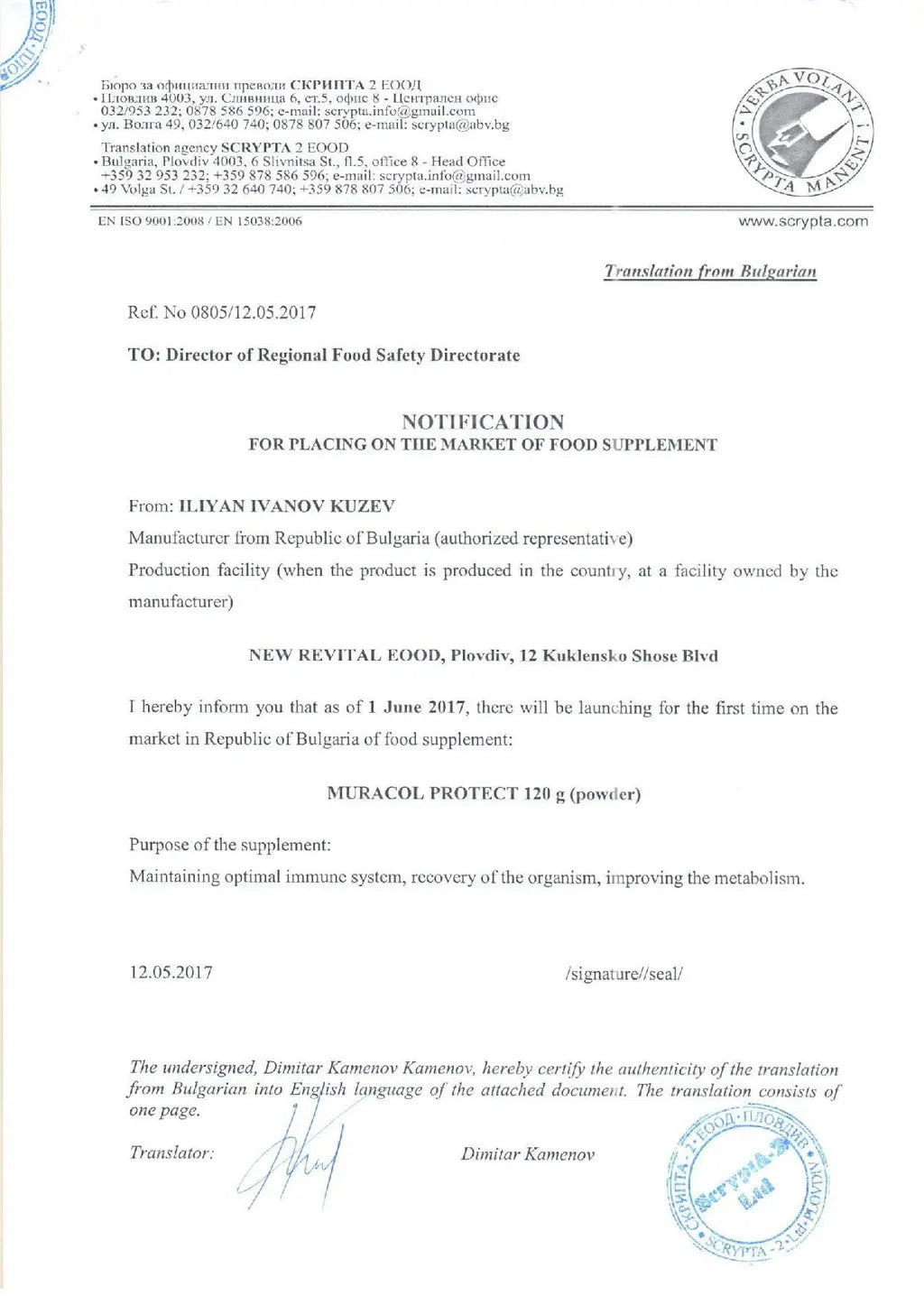 100 % liposominis buivolo priešpienis 360 g <tc>Muracol</tc> Apsaugoti | HALAL