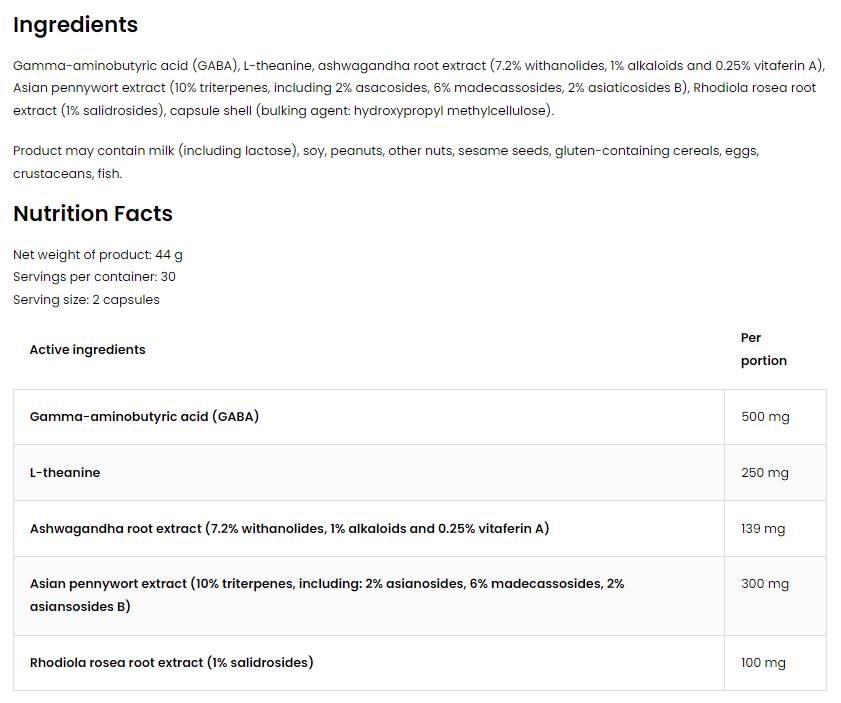 The Serenity formula is specifically designed to help the body cope with everyday stress and tension. The ingredients in the product, including GABA, L-Theanine and Ashwagandha, work synergistically to offer a sense of calm and relaxation. GABA is a well-known neurotransmitter that aids in the transmission of nerve impulses and reduces feelings of anxiety. L-Theanine, in turn, promotes the production of alpha waves in the brain, which leads to improved concentration and meditation. Ashwagandha is an adaptogen that helps the body adapt to stress and strengthens the immune system.