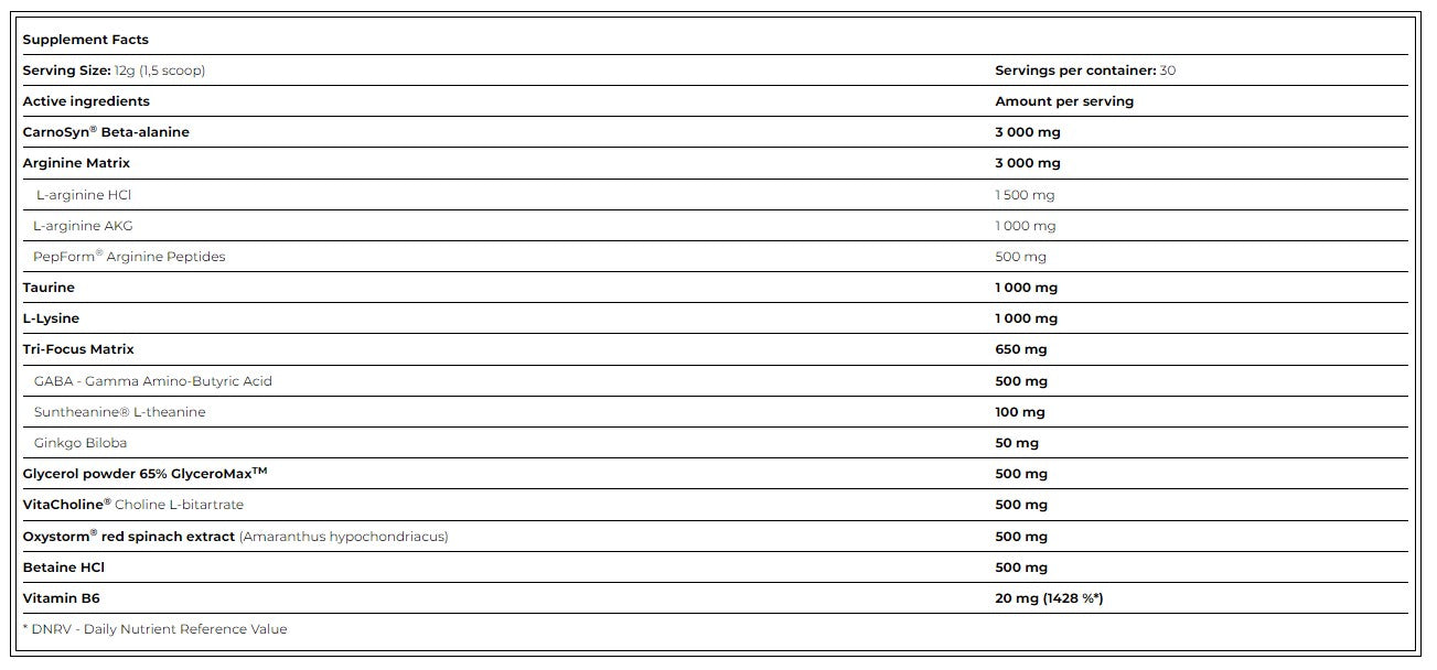 Uit wetenschappelijk onderzoek blijkt dat ingrediënten in het product, zoals bèta-alanine en arginine, de fysieke prestaties kunnen verbeteren en vermoeidheid tijdens het sporten kunnen verminderen. Vitamine B6 speelt een belangrijke rol in de energiestofwisseling en kan helpen vermoeidheid te bestrijden, wat vooral belangrijk is tijdens intensieve trainingen.