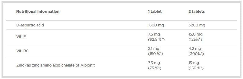 Ingrediënten:D-asparaginezuur, vitamine E en B6, zink (als Albion®-chelaat)