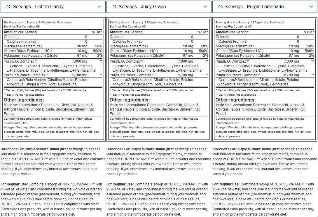 Uit wetenschappelijk onderzoek blijkt dat het innemen van essentiële aminozuren (EAA's) de eiwitsynthese in spieren verhoogt, wat essentieel is voor groei en herstel. De aminozuren in Purple Wraath worden aanzienlijk sneller opgenomen dan standaard wei-eiwitten, waardoor ze uiterst effectief zijn. De formule omvat: