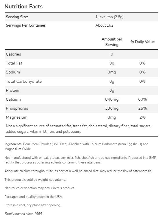 Proszek z mączki kostnej | Doskonałe źródło wapnia 454 gramy