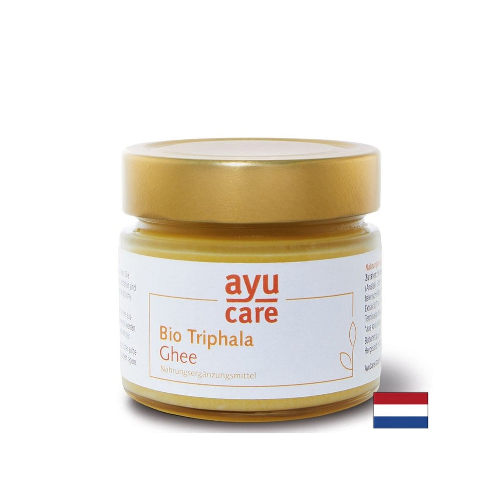 Triphala Ghee, Bio is a combination of clarified butter (ghee) and the Ayurvedic herbal mixture triphala, known for its detoxifying and digestive effects. It helps cleanse the intestines, absorb nutrients and balance the digestive system