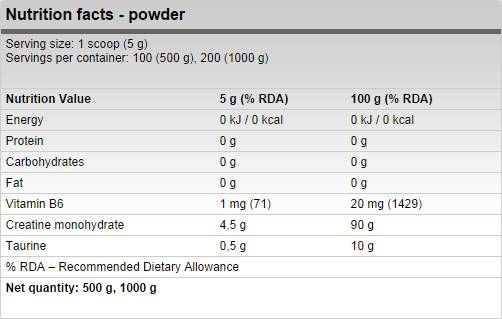 Ekstremalna kreatyna oferuje również trochę więcej. Każda dawka zawiera odpowiednią ilość tauryny. Tauryna poprawia szybkość wchłaniania kreatyny i wzmacnia jej działanie. Dlatego Ekstremalna kreatyna powinien być Twoim wyborem!