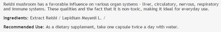 Składniki: Ekstrakt z Reishi (Lepidium Meyenii L.)