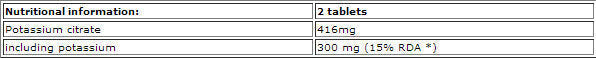 Ingredients: Potassium citrate, Microcrystalline cellulose.