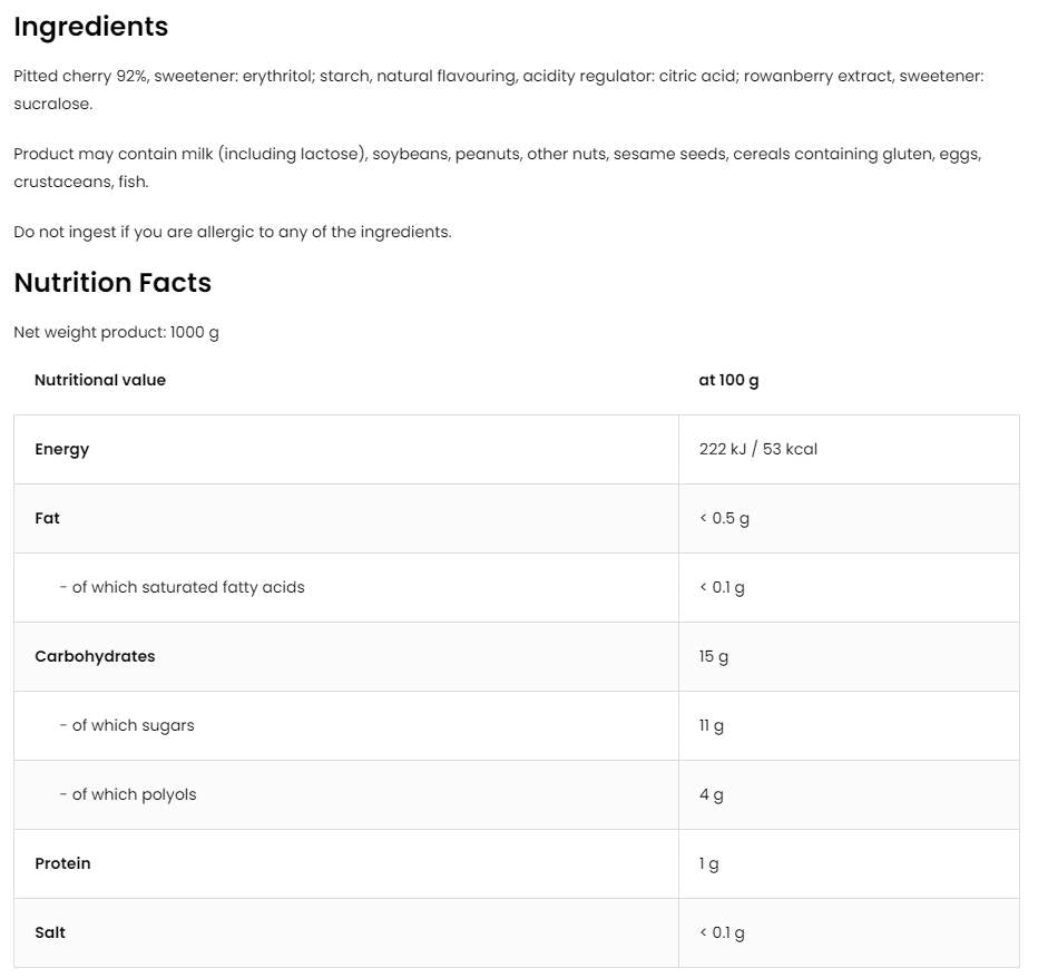 A geleia de cereja com 92% de fruta natural e sem adição de açúcar é um produto exclusivo que oferece inúmeros benefícios à saúde. É uma fonte de antioxidantes que ajudam a proteger as células dos danos causados ​​pelos radicais livres. O consumo de cerejas está associado à redução de processos inflamatórios no corpo e ao apoio à saúde do sistema cardiovascular.