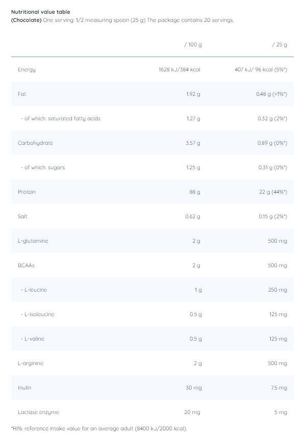 Uma porção da fórmula de proteína de absorção extremamente rápida contém 23 g de proteína de qualidade.