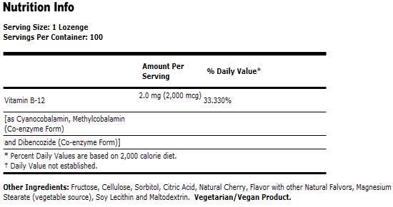 Vitamina B -12 Energia instantânea 2000 mcg - 100 comprimidos sublinguais