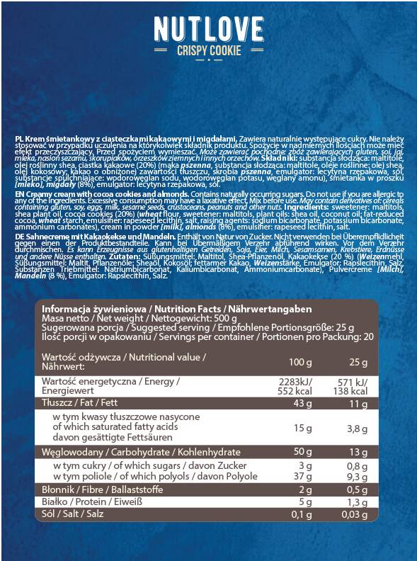 NutLove é a marca número um de suplementos líquidos que oferece um creme proteico exclusivo em uma variedade de sabores. Este produto é a solução perfeita para quem procura adicionar uma fonte de proteína de alta qualidade à sua dieta diária.